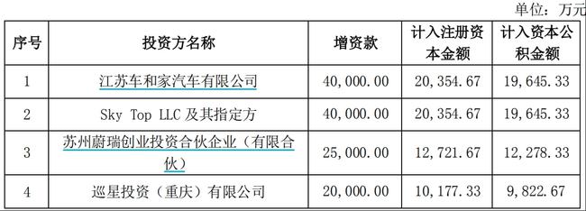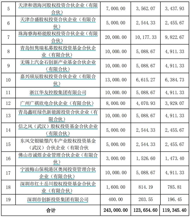 参与此次增资的 19 家企业分别是:和谐海河、车和家、Sky Top、蔚瑞投资、巡星投资、睿海裕能、嘉兴颀辰、恒隽瑞、上汽金石、华友控股、奥闻投资、广祺欣电、合盛投资、鑫旺绿色、信之风投资、交银辕憬、佛山诚煜、红土岳川、深创投。