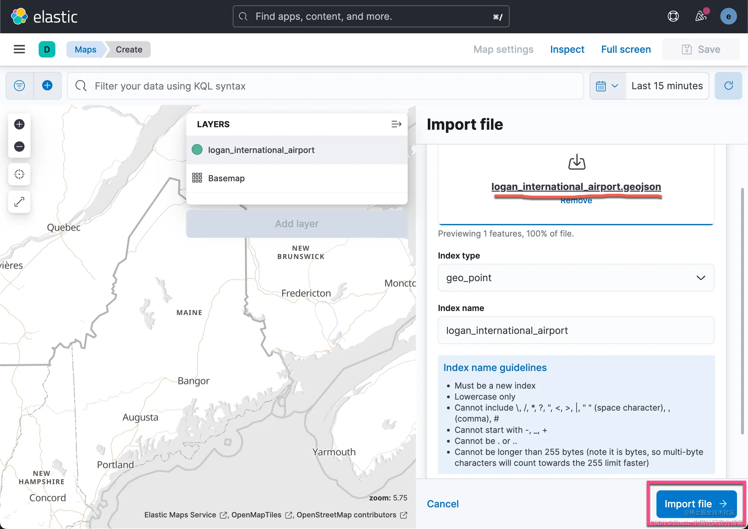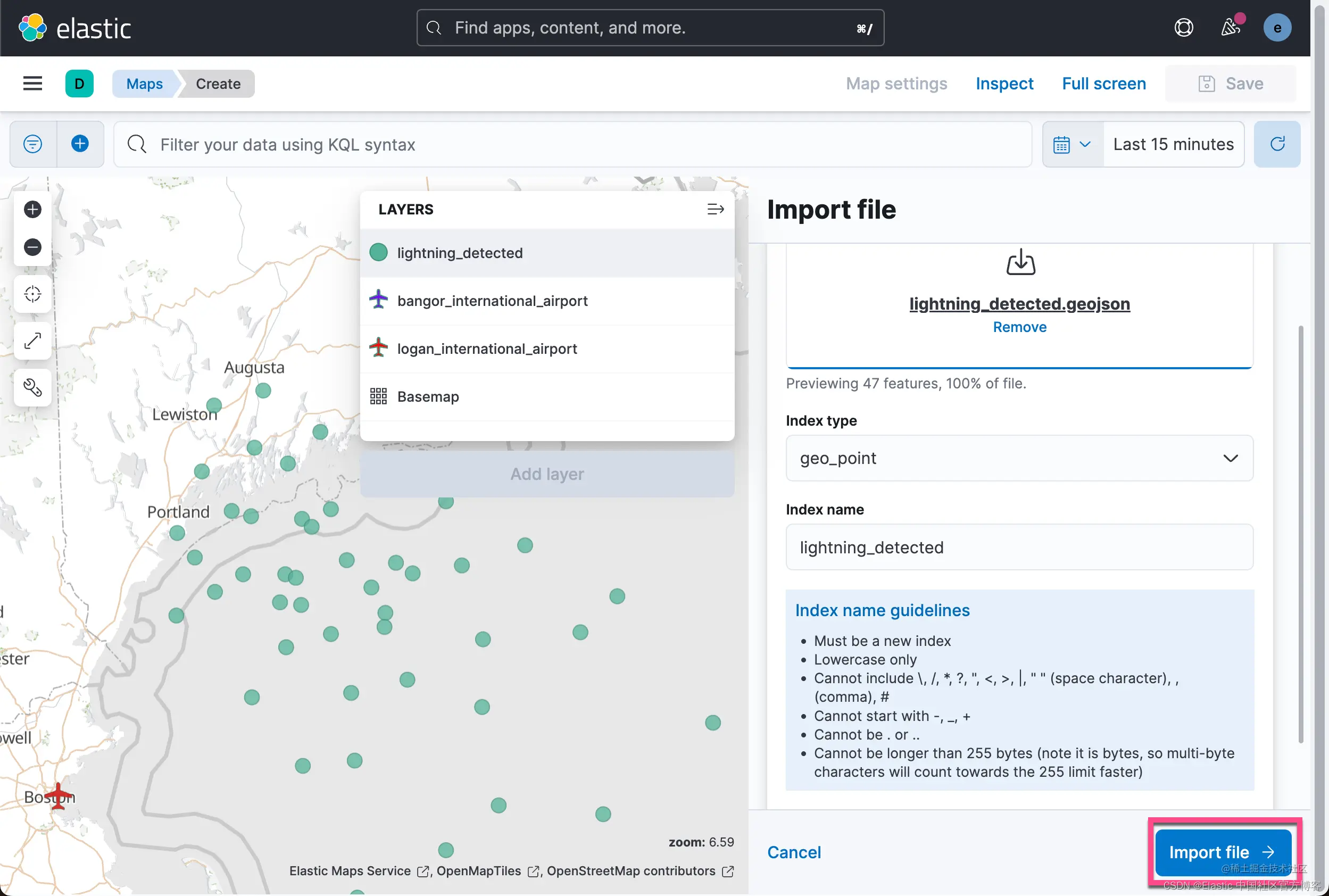 将 GeoJSON 文件导入 Kibana