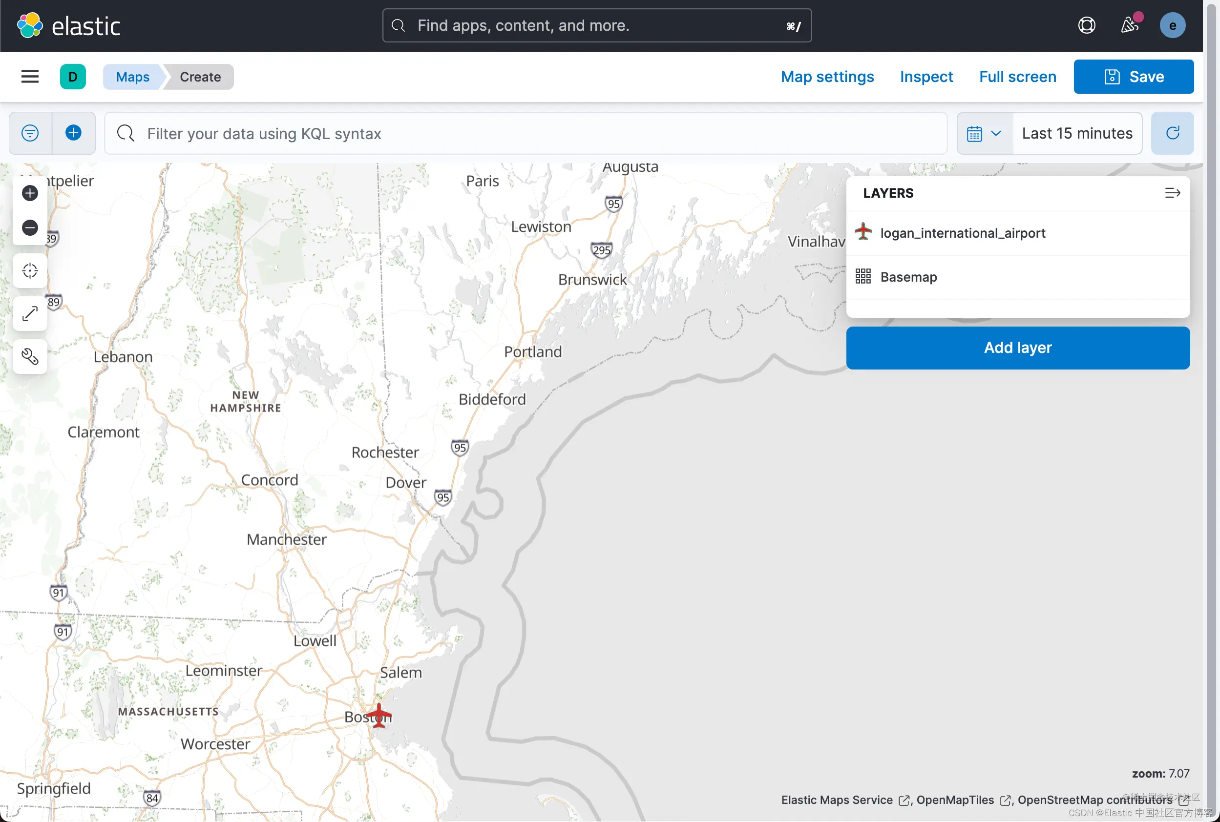 我们首先来上传 logan_international_airport.geojson 这个文件。点击上图中的 Add layer 按钮: