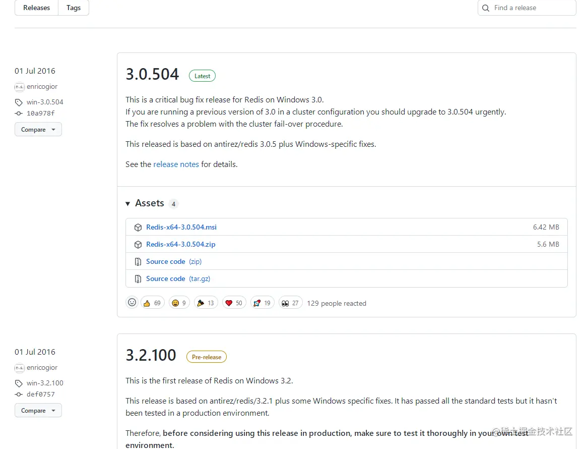 不过虽然redis的官网上不提供windows版本下载,但是这也难不倒我这个面向百度编程的小能手,一番查找后让我找到了微软在github上维护的几个可以在windows上运行的redis版本:
