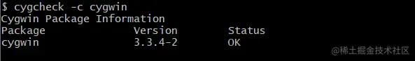 安装完成后,我们运行Cygwin64 Terminal,通过命令检测可以看到Status为OK,表示cygwin运行正常: