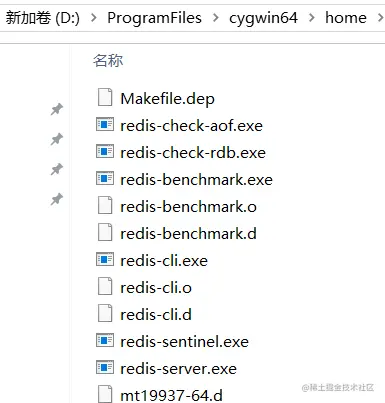 我们可以在cygwin的bin目录下找到这个文件,为了方便,把可执行文件、动态链接库文件、redis配置文件拷贝到一个单独的目录下再次尝试启动: