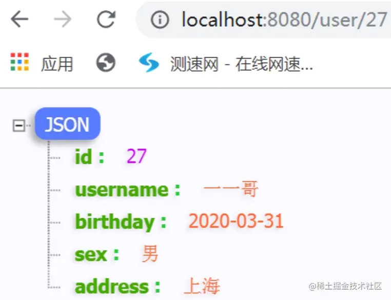 接下来我们在浏览器中输入接口地址,进行查询。